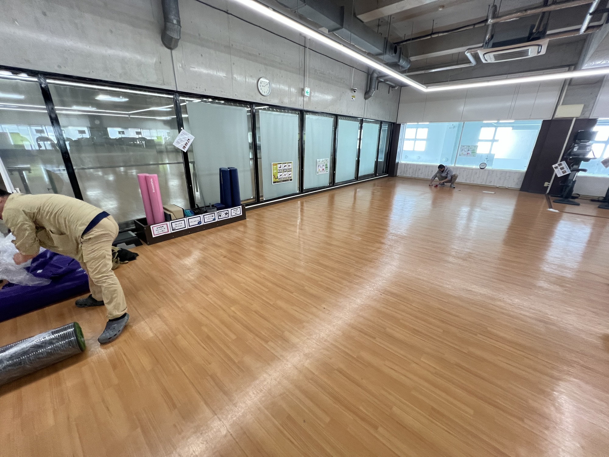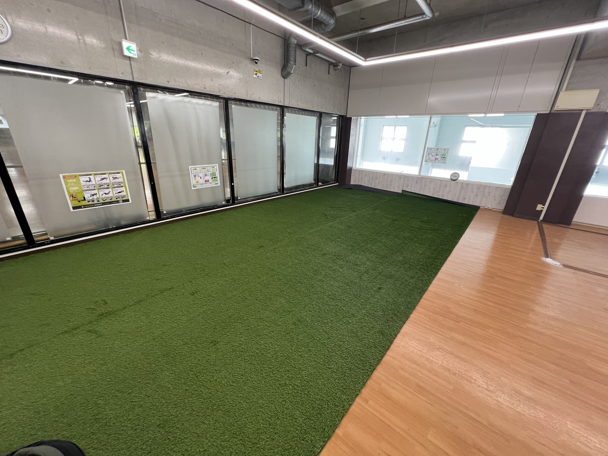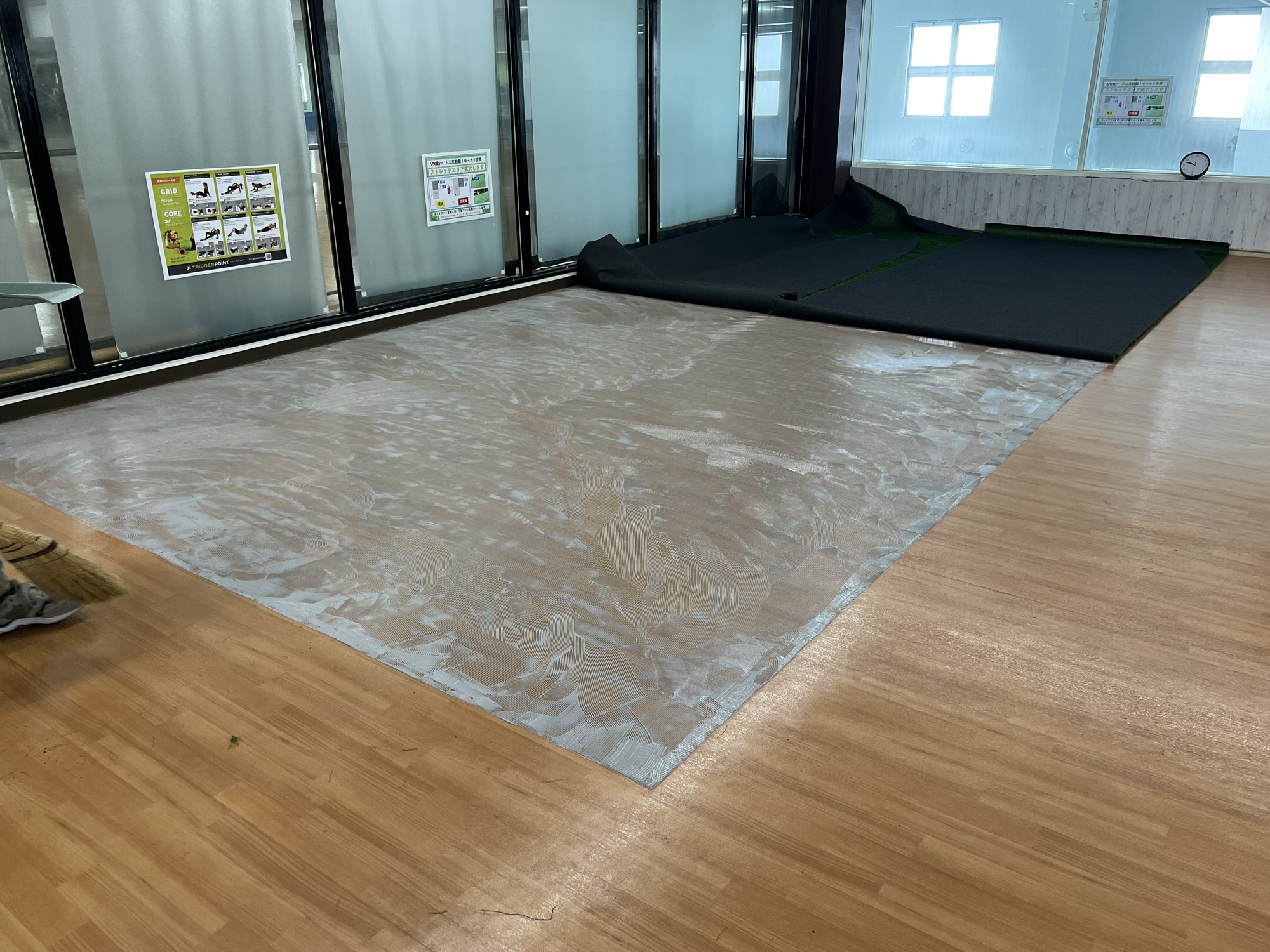 既存床の上に新規で人工芝を施工いたしました